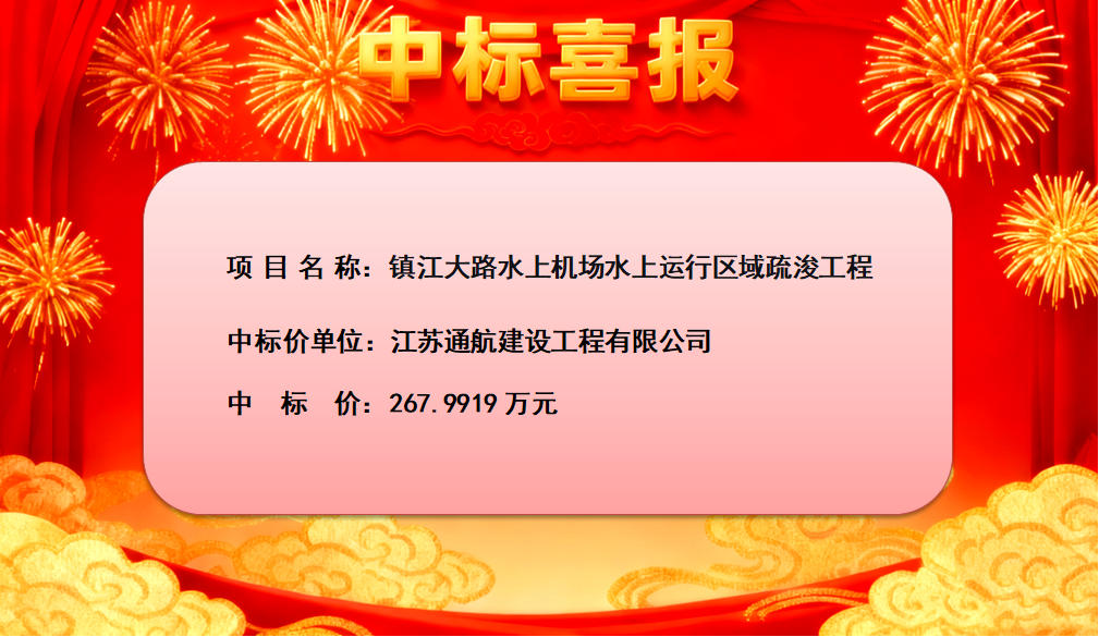 近日,由鎮(zhèn)江大路通用機(jī)場(chǎng)建設(shè)有限公司招標(biāo)的鎮(zhèn)江大路水上機(jī)場(chǎng)水上運(yùn)行區(qū)域疏浚工程招標(biāo)結(jié)果揭曉,江蘇通航建設(shè)工程有限公司成功中標(biāo),中標(biāo)金額為267.9919萬(wàn)元。該項(xiàng)目計(jì)劃工期50日歷天,將以“合格”的工程質(zhì)量與“安全生產(chǎn)無(wú)責(zé)任事故”為目標(biāo),為鎮(zhèn)江大路水上機(jī)場(chǎng)的順利運(yùn)營(yíng)奠定堅(jiān)實(shí)基礎(chǔ)。
